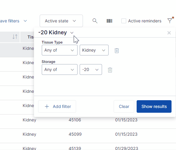 SciNote offers advanced inventory filters to strengthen and improve your search for specific items and repeated inventory table filtering.