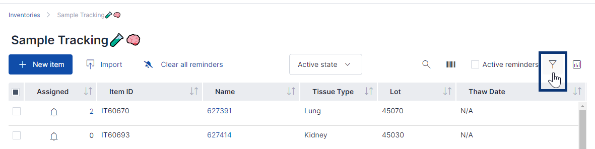 To use this feature, go into one of your Inventories and look for the Filter icon on the right side (see picture below).