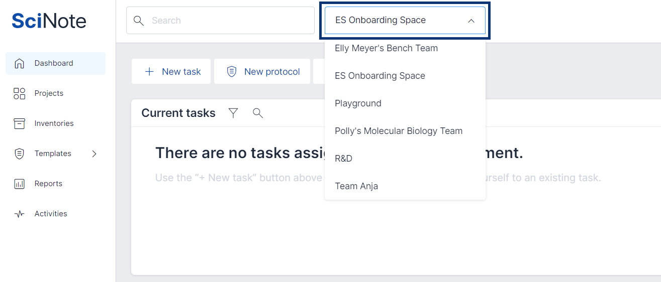 - Click the Workspace dropdown, located in the top bar of the screen (see the image below).