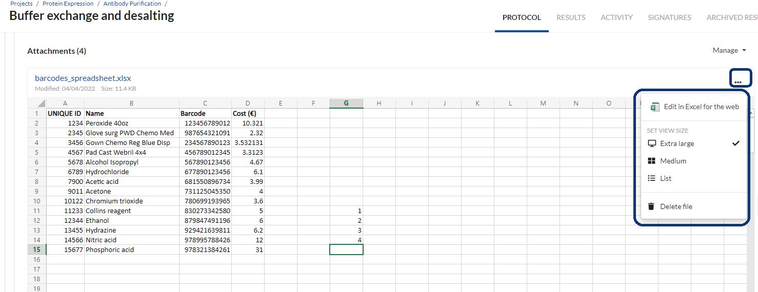 SciNote's Microsoft Office Online integration enables you to create, upload, and edit Microsoft Word, Excel, and PowerPoint files directly inside SciNote.