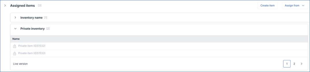 Items a user cannot access will be shown as “Private item (ID)” with a lock icon