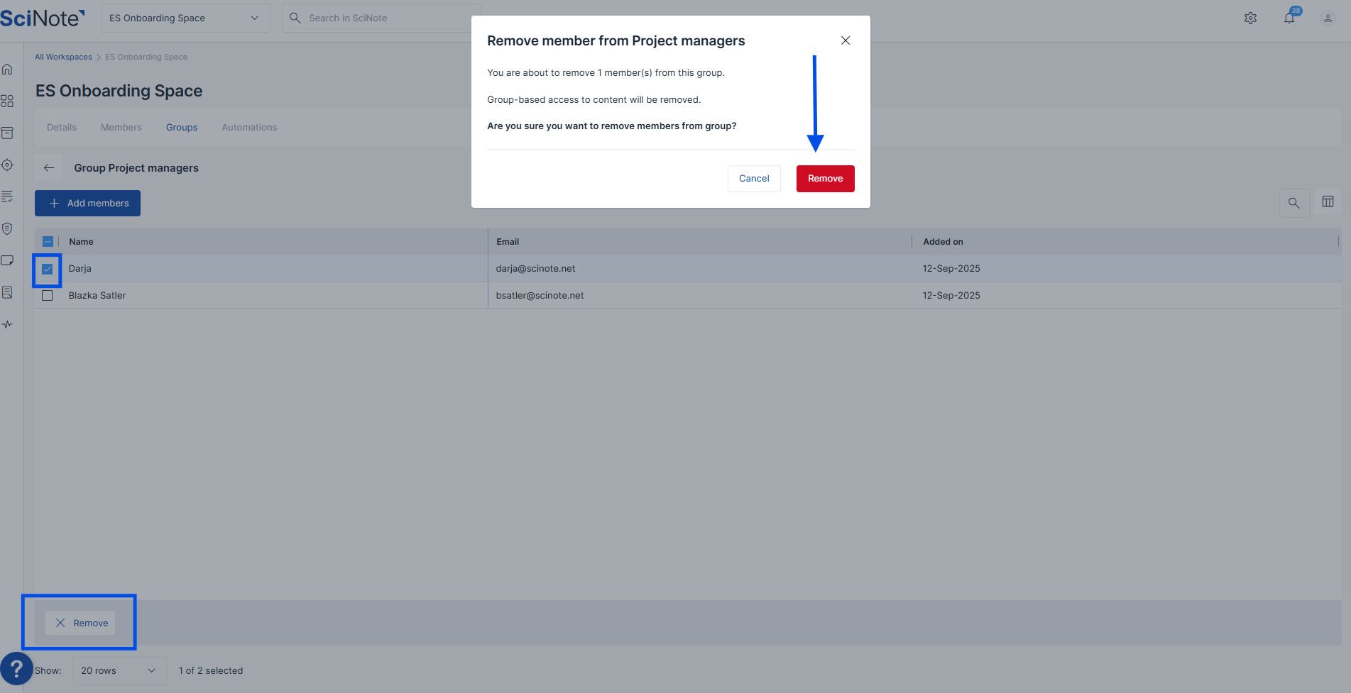 For example, if a team member transfers to a different lab or no longer needs access to certain projects, you can easily remove them from a specific group without affecting their overall workspace membership.
