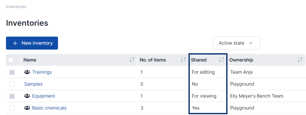 In your list of inventories, shared inventories will be indicated by the following icon before the Inventory name: