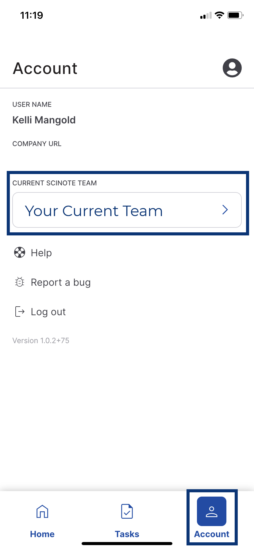 - Under Current SciNote Workspace, tap on the workspace name you are currently in