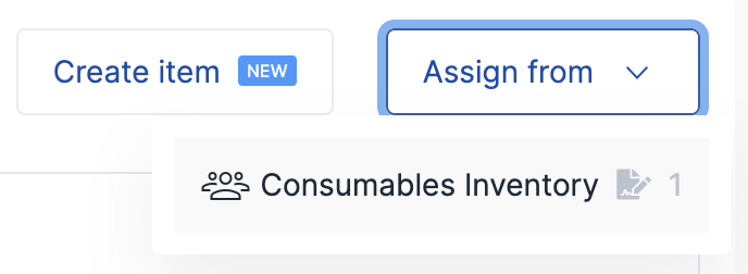 - From the dropdown, Select the inventory which contains the item(s) you’ve previously assigned. A pencil and paper icon appear next to the inventory name.