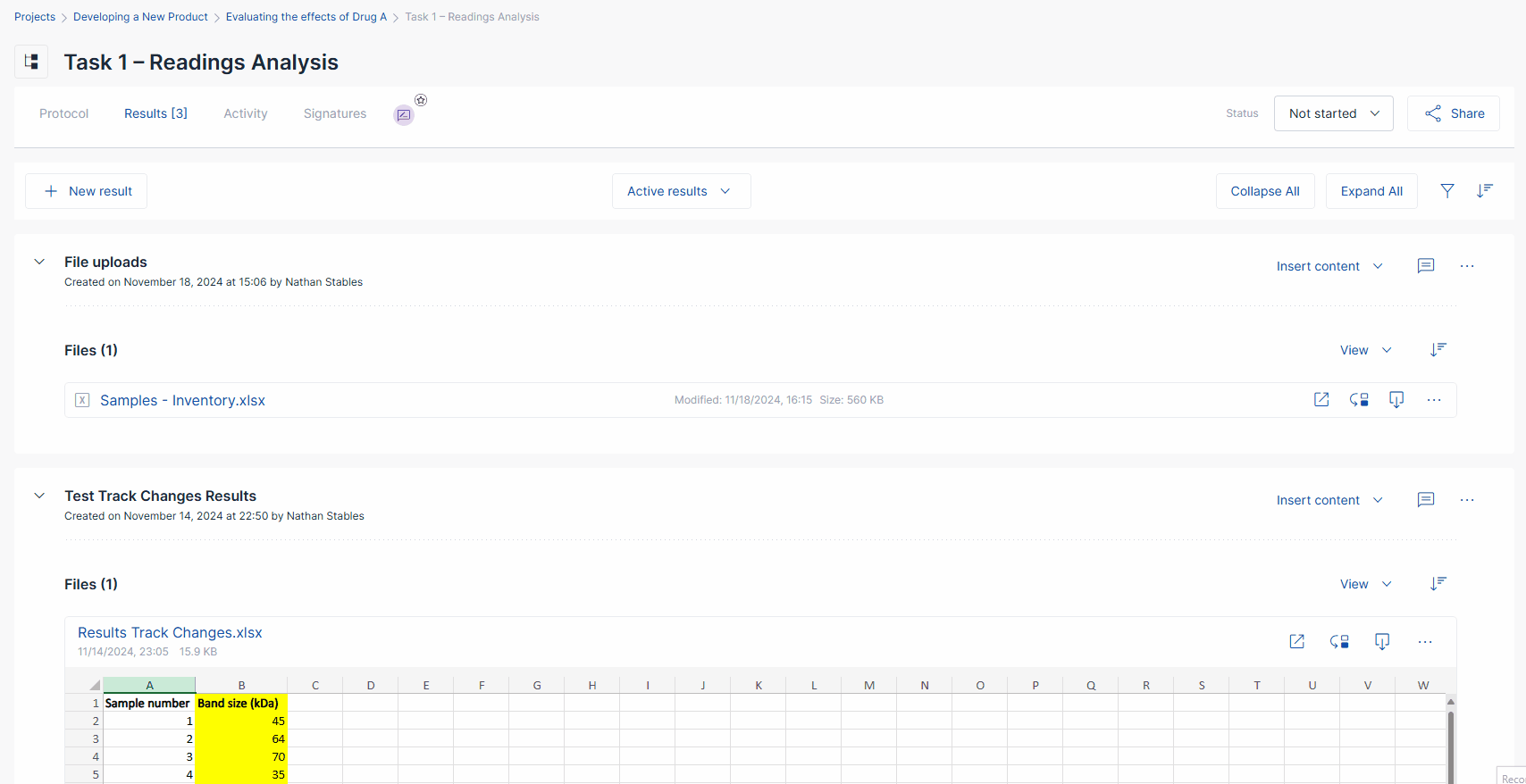 If you have the Validated or Platinum SciNote plan, you can view the version history of any files attached to a step, result, or inventory item.