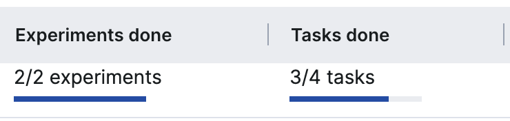There is also a 'Tasks done' column within the Experiments table, which shows the same data for each individual Experiment workflow.